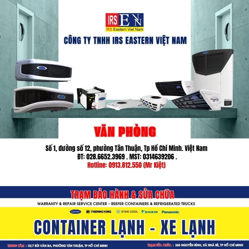 Công ty TNHH IRS EASTERN VIỆT NAM chính thức được thành lập vào tháng 11 năm 2017 với mục tiêu đem đến một tiêu chuẩn mới về chất lượng và công nghệ đột phá của dòng sản phẩm máy lạnh Carrier dành cho xe tải lạnh tại thị trường Việt nam.